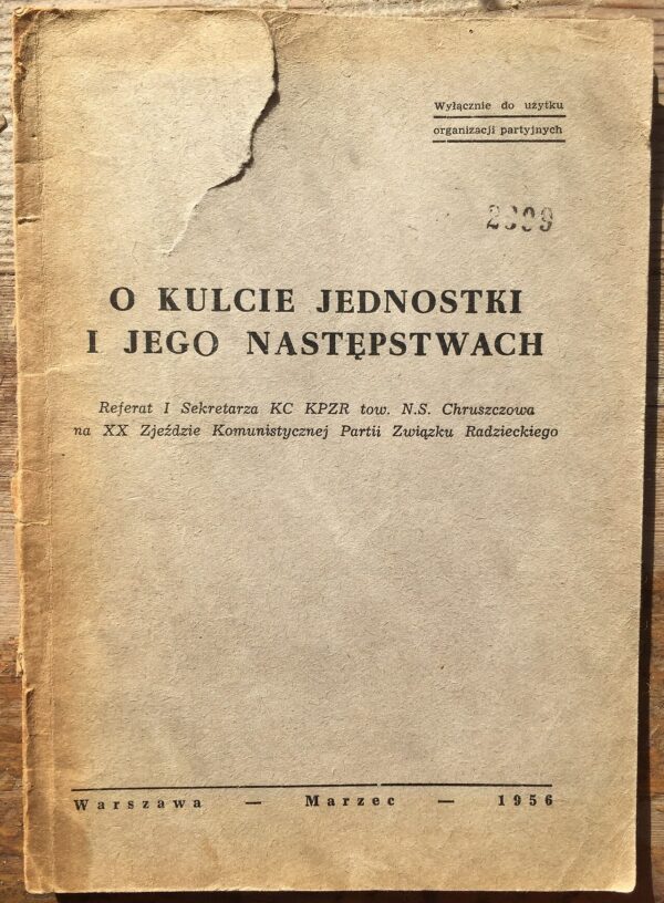 O kulcie jednostki i jego następstwach (О культе личности и его последствиях), польское издание, март 1956, для внутрипартийного пользования